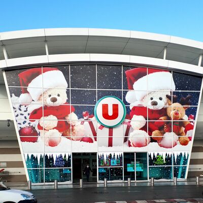 Ce mois-ci : la communication sur vitrage pour dynamiser votre façade pour les fêtes de fin d'année tout en conservant la luminosité.