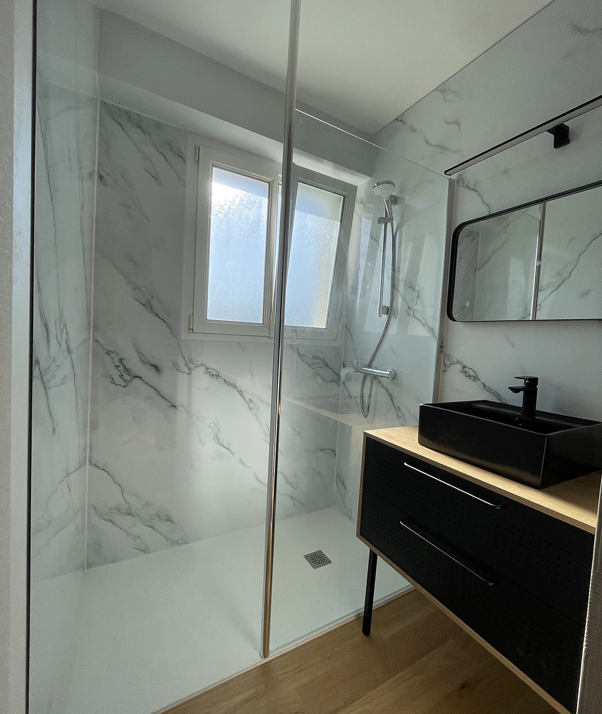 Agencement - Rénovation d'une salle de bain avec panneau décoratif