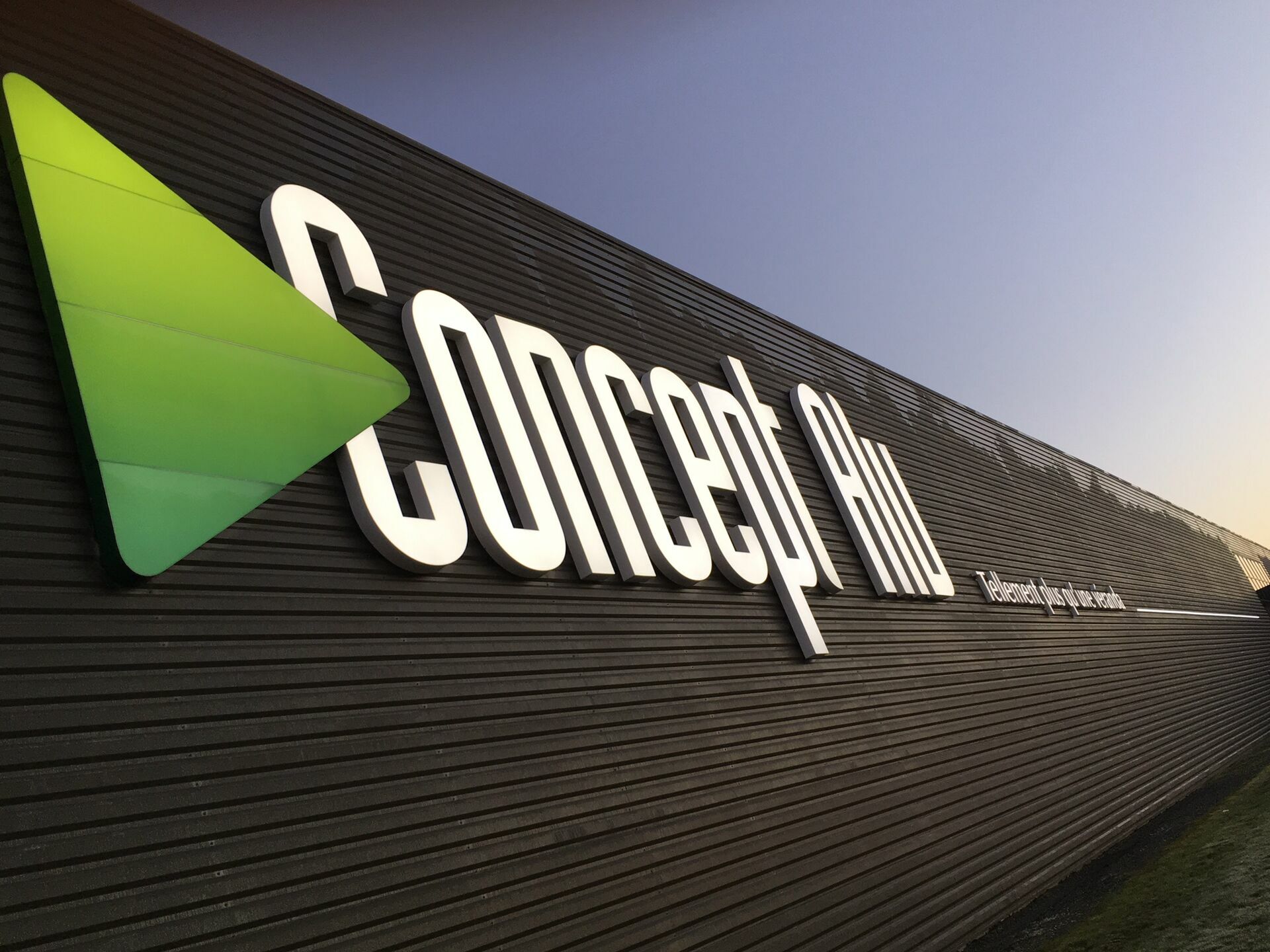 Enseigne lumineuse lettre boitier avec base line - Concept Alu