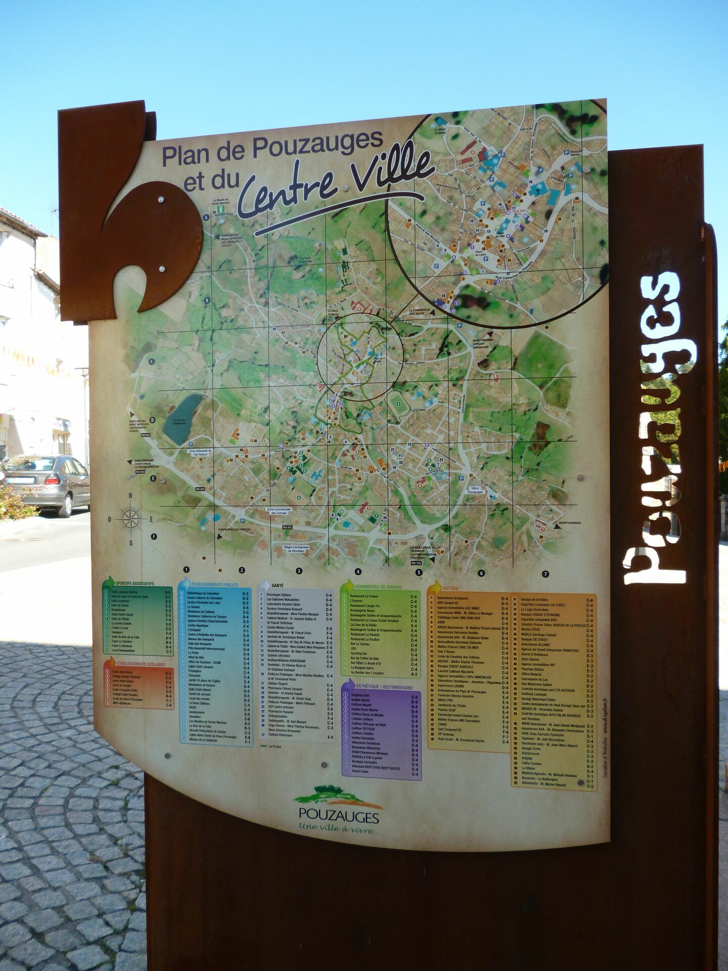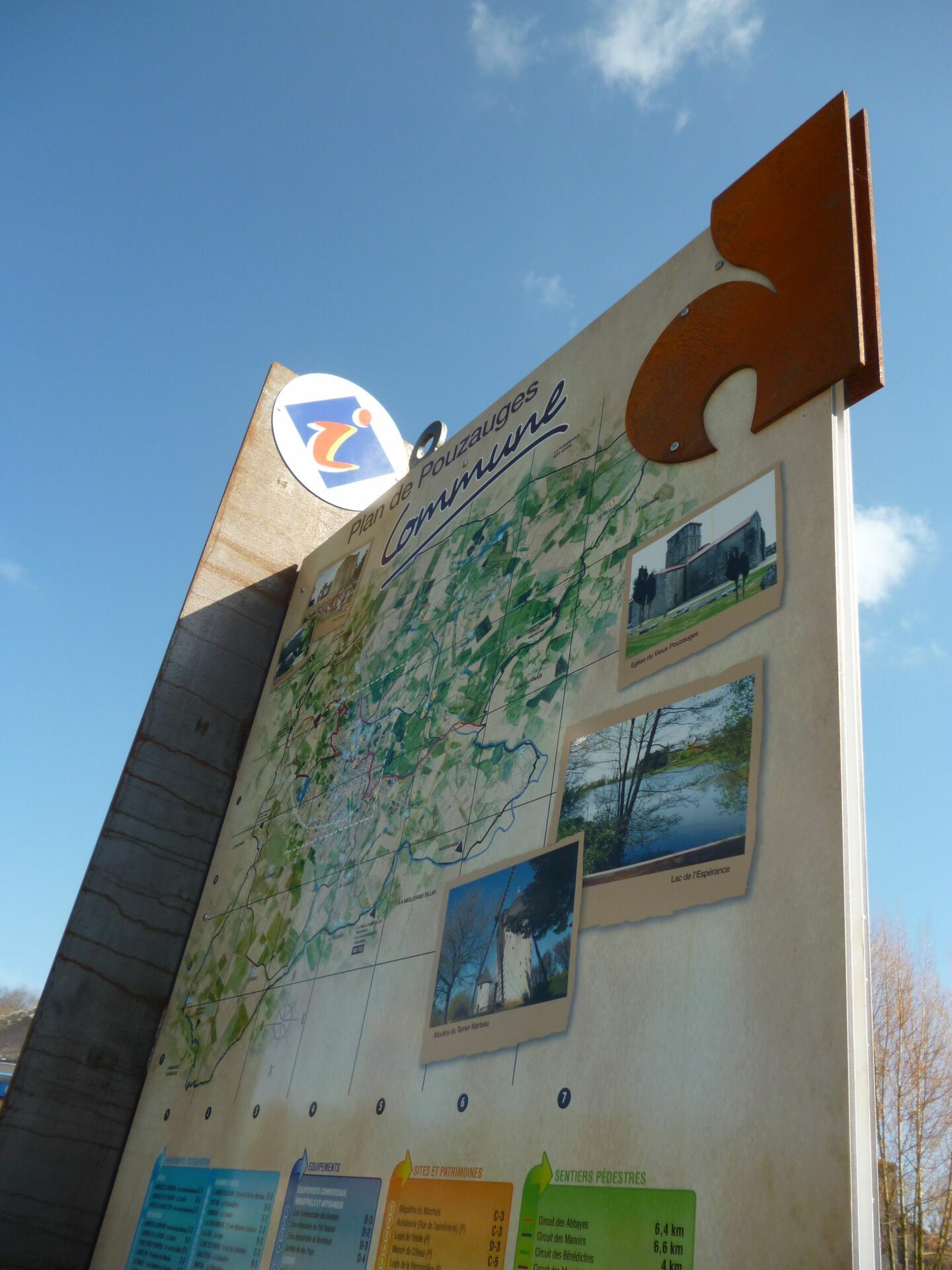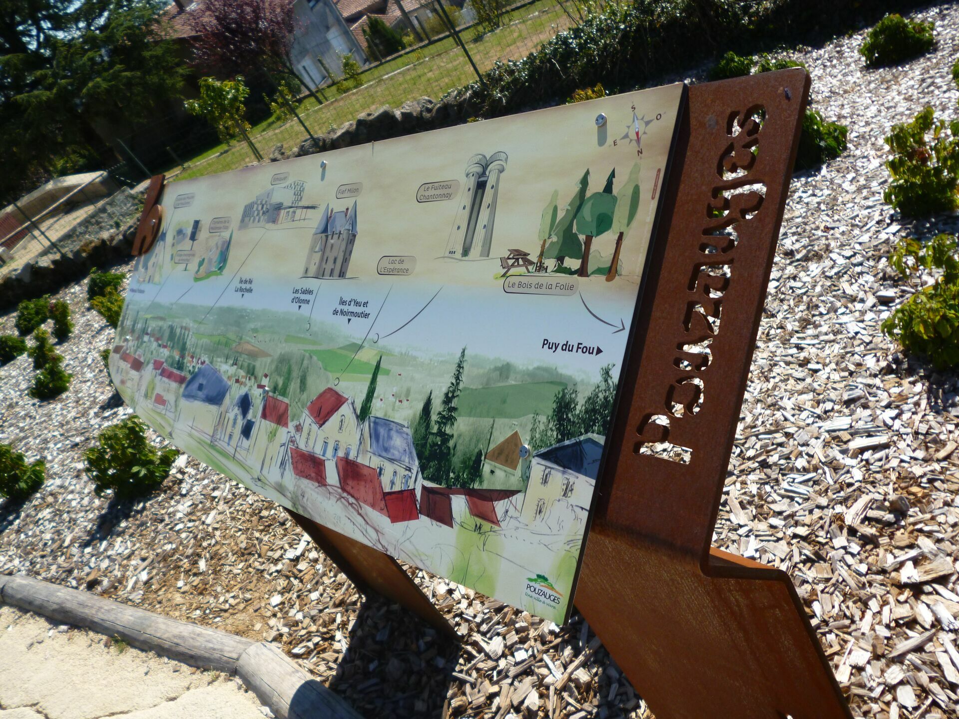 Commune nichée au cœur du bocage vendéen, Pouzauges bénéficie d’un patrimoine architectural avec son château médiéval et son centre historique. Une signalétique conçue en acier CORTEN, composée de pupitres, plaques murales, tables de lecture, oriente et informe les touristes sur les lieux remarquables.