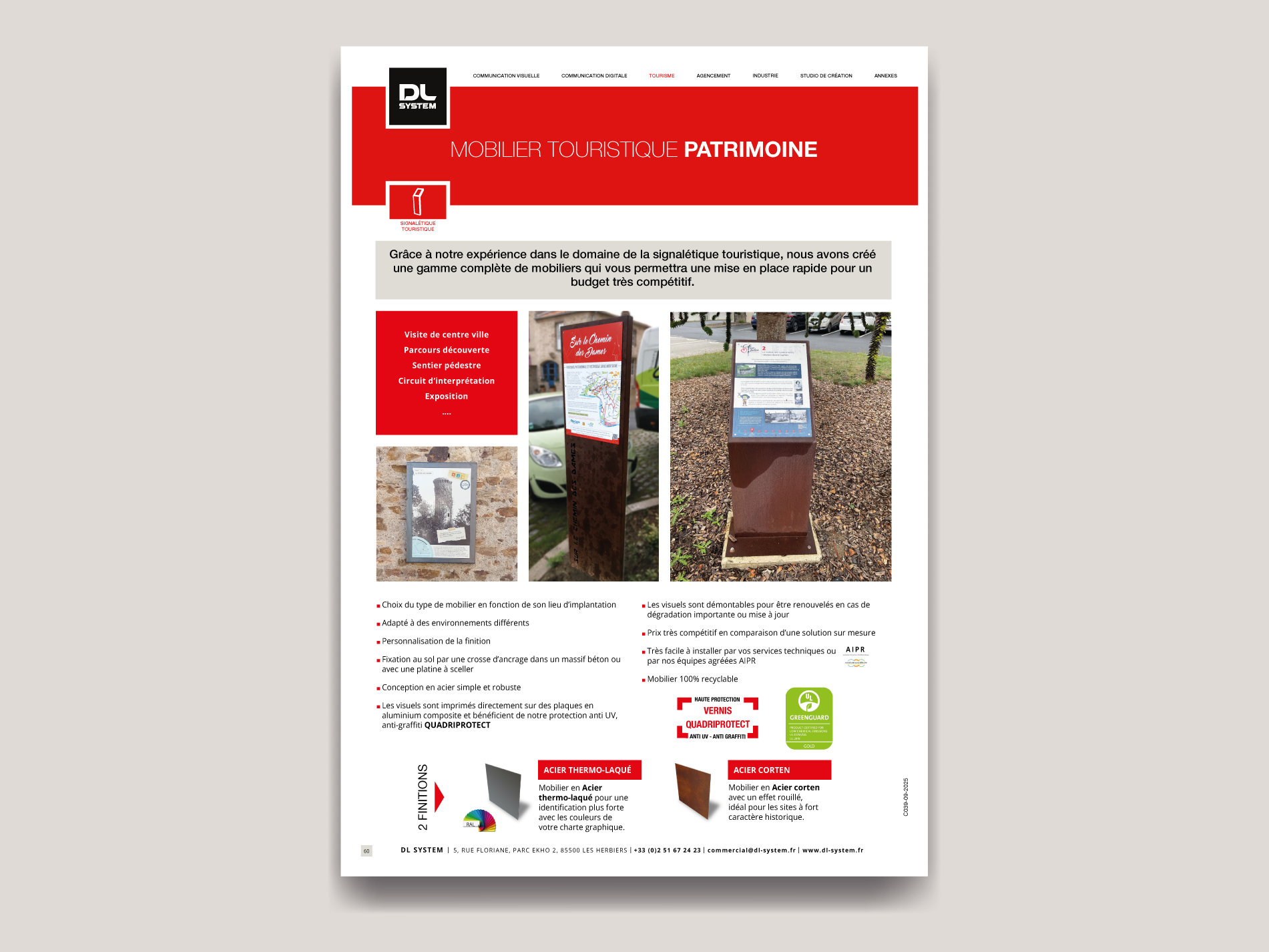 Vous fournissez des photos et des textes, on s'occupe du reste : illustration, mise en page, fabrication et pose (ou livraison avec pose réalisée par votre service technique).
